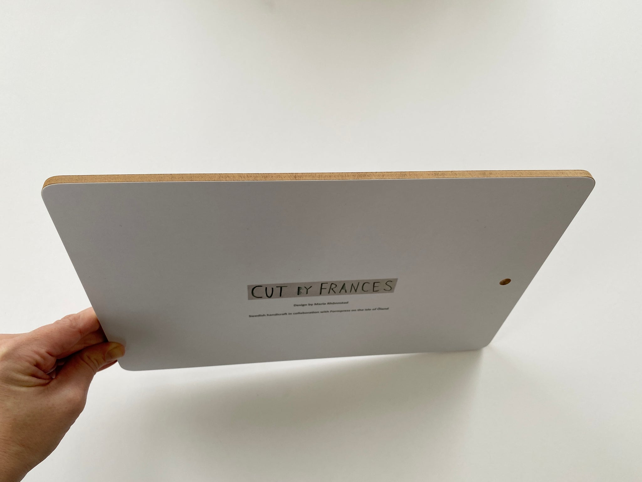 Skärbräda i formpressad björkfanér. Tillverkad i Sverige. Måttet på skärbrädet är 30x20. Skickas fraktfritt inom Sverige.